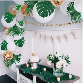 12pcs Artificial Tropical Palm Leaves Hawaiian Luau Safari Jungle Party Summer Wedding Birthday Home Table Decor Fake Plant